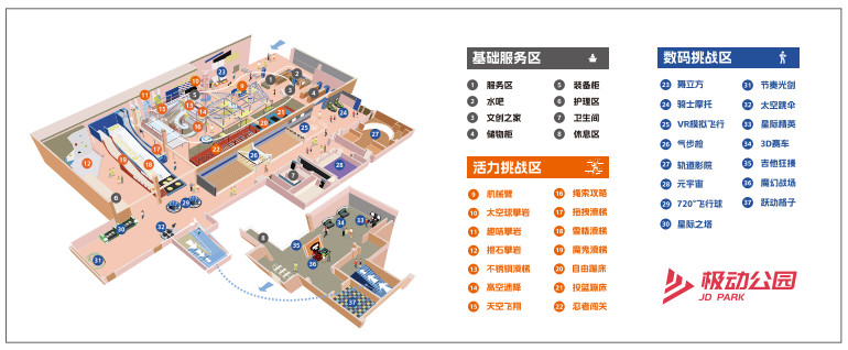 爆款IP“极动公园”室内运动主题乐园,主打年轻人群体,是集体育竞技、冒险挑战、数码体感游戏于一体的室内娱乐运动乐园。