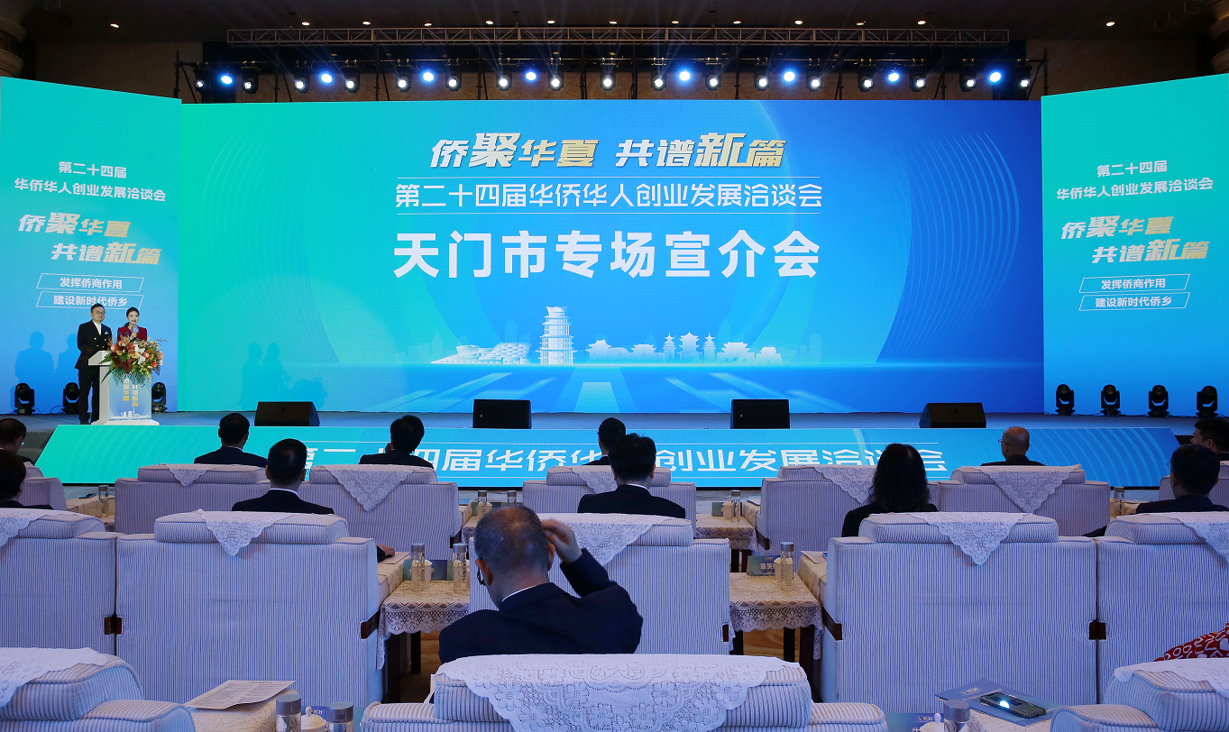 10月23日,第二十四届华侨华人创业发展洽谈会开幕式结束后,天门市专场宣介活动在武汉举行。天门市委书记、市人大常委会主任纪道清出席,天门市委副书记、市长肖敏作专场宣介。