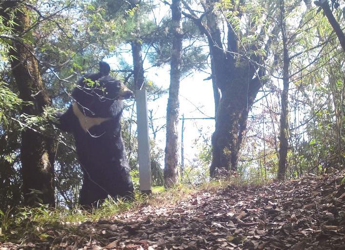 晚上,工作人员疲惫地回到管理站,顾不上休息,迫不及待地寻找破坏相机的“肇事者”线索。通过红外相机拍摄画面显示,发现一头300多斤肥大壮硕的国家二级保护动物黑熊在红外相机前表演“独门绝技”,黑熊不愧是杂技高手,第一个节目表演的是后腿站立;第二个节目是攀爬大树,黑熊庞大的身躯虽然看似笨重迟缓,但它是爬树高手,只见它身手敏捷地快速爬上树顶;正准备表演第三个节目时发现相机在“偷拍”,黑熊发怒了,狂暴地将相机扒拉下来摔入密林深处。