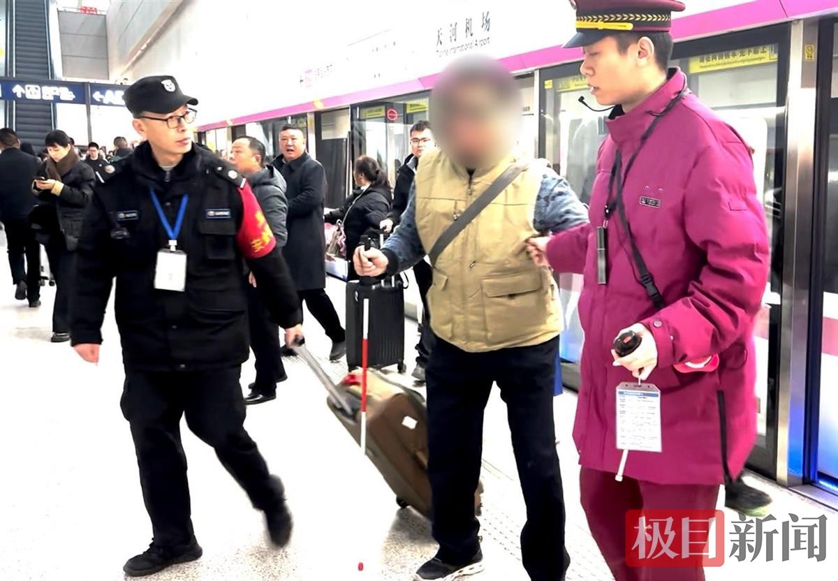 一名视障男子准备乘坐武汉地铁前往天河机场,沿路至少9名热心人主动伸援手,出发站、换乘站、目的地3座地铁站工作人员无缝对接,这名男子35公里的地铁路程全程无忧。
