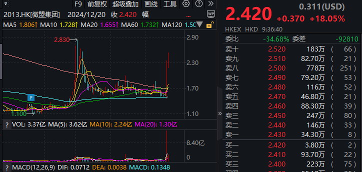 受此影响,19日当天,腾讯盘中一度大涨近4%,收盘涨幅超过2%。作为腾讯系的重要成员,微盟集团在港股盘中一度大涨超50%,截至19日收盘涨35.76%,20日开盘再度盘中涨超20%。2023年视频号直播电商GMV同比增长超过1000亿元,2024年微信电商基建快速完善,“双11”官方开始补贴用户。