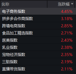 在相关消息带动下,今日早盘A股电子商务、拼多多合作商、直播带货、跨境电商等相关概念股领涨。