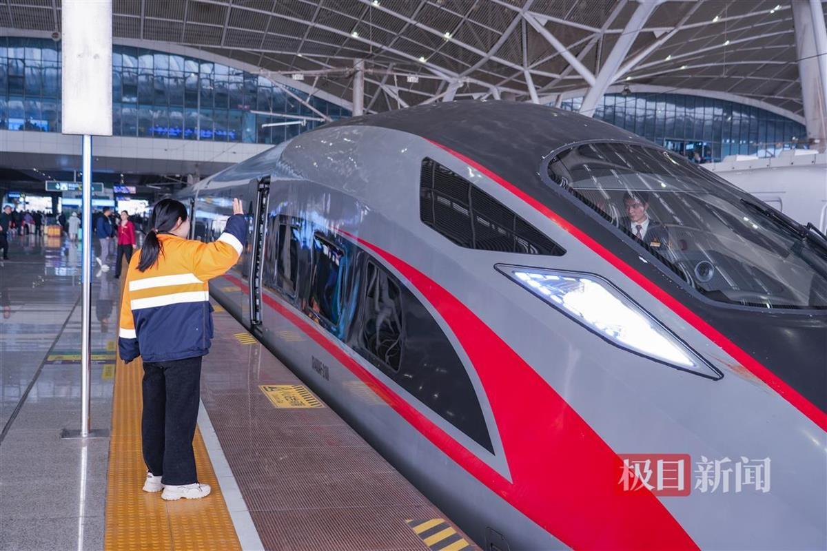 原标题:他在高铁驾驶室,她在站台测信号:情人节,两人的3分钟“同框”