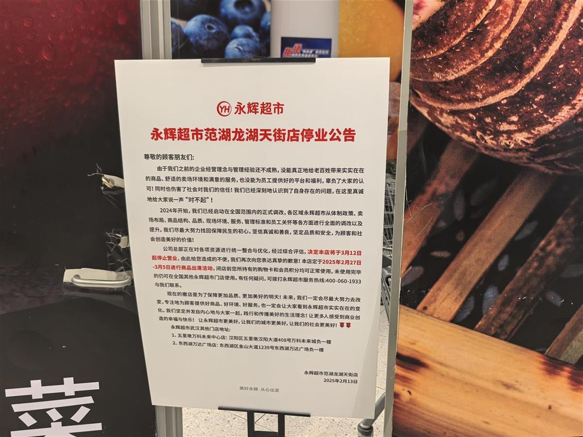 永辉超市贴出闭店通知