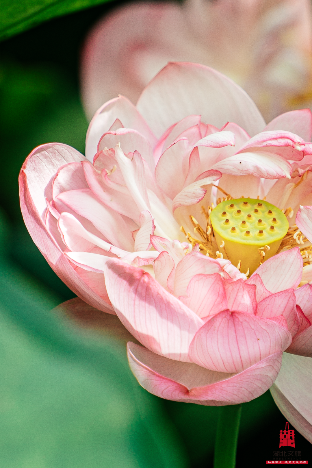 当夏日的暖阳洒在湖北的水域,荷花宛如凌波仙子,粉白的花瓣宛如薄纱,在微风中轻颤,嫩黄的花蕊藏于其间,散发着淡淡清香。