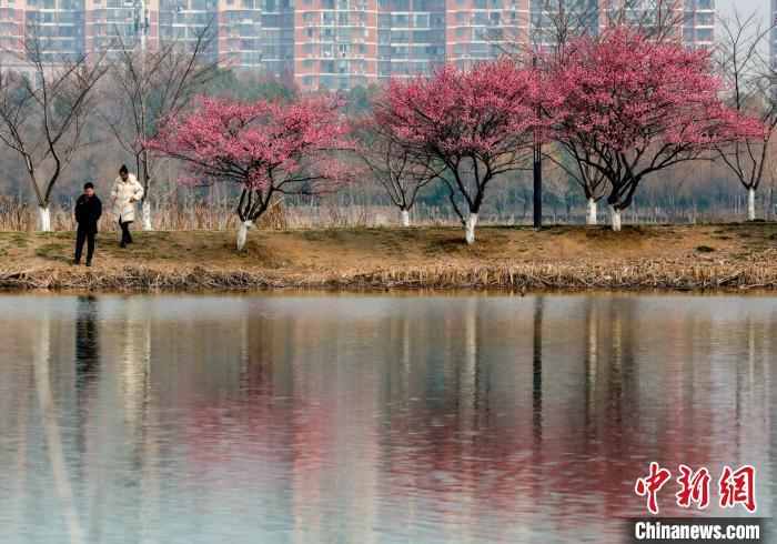 原标题:武汉竹叶海公园梅花盛开吸引民众观赏