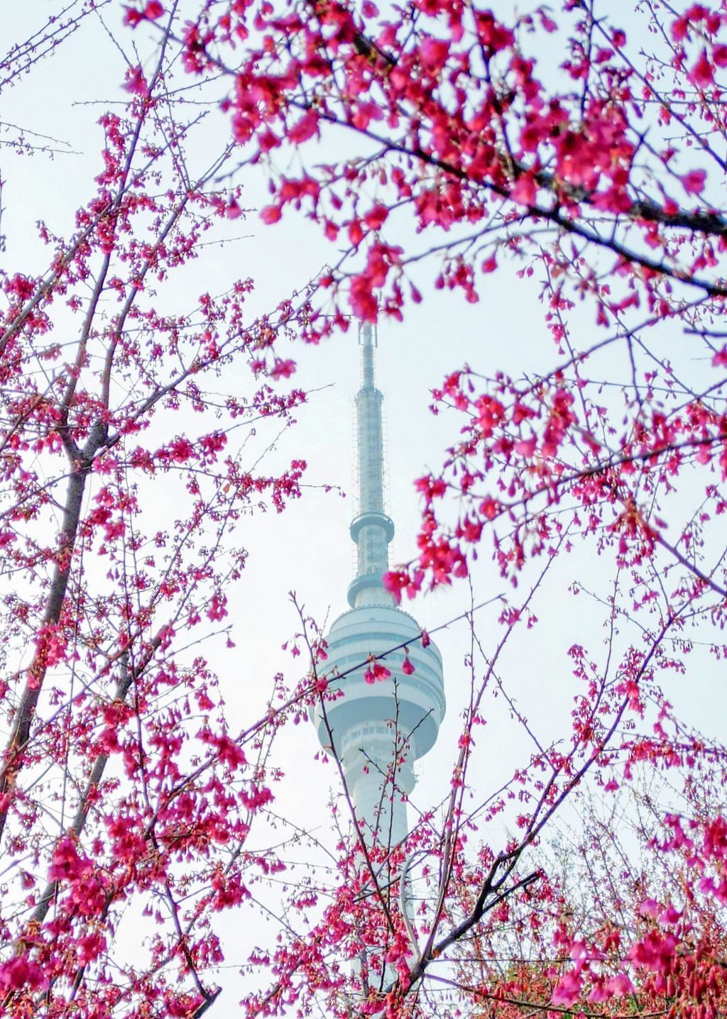 武昌东四路拥有双层樱花,是武汉最具特色的“网红”赏樱道路,3月底中樱染井吉野和晚樱关山樱“双樱”同框,别具一格。