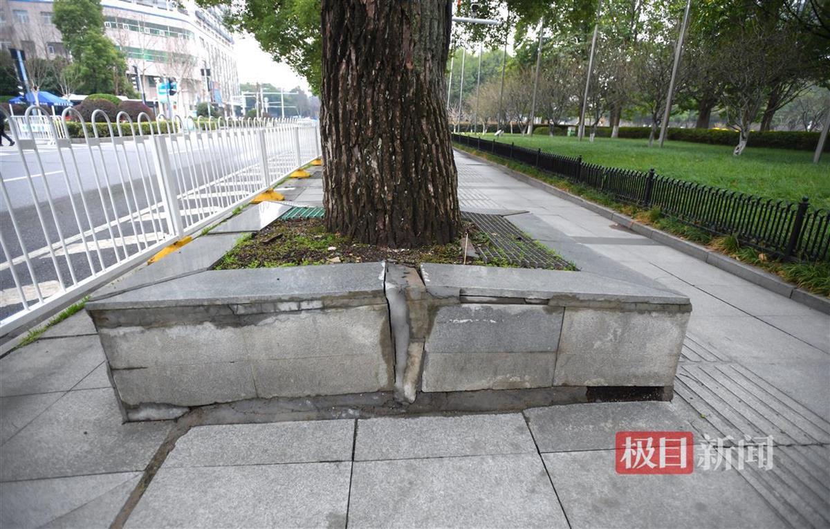 3月4日,武昌黄鹤楼下的长江大道上,一些行道树的树根凸起,导致人行道围挡和地砖损坏。不仅破坏了道路的美观,也可能给路人带来安全隐患。
