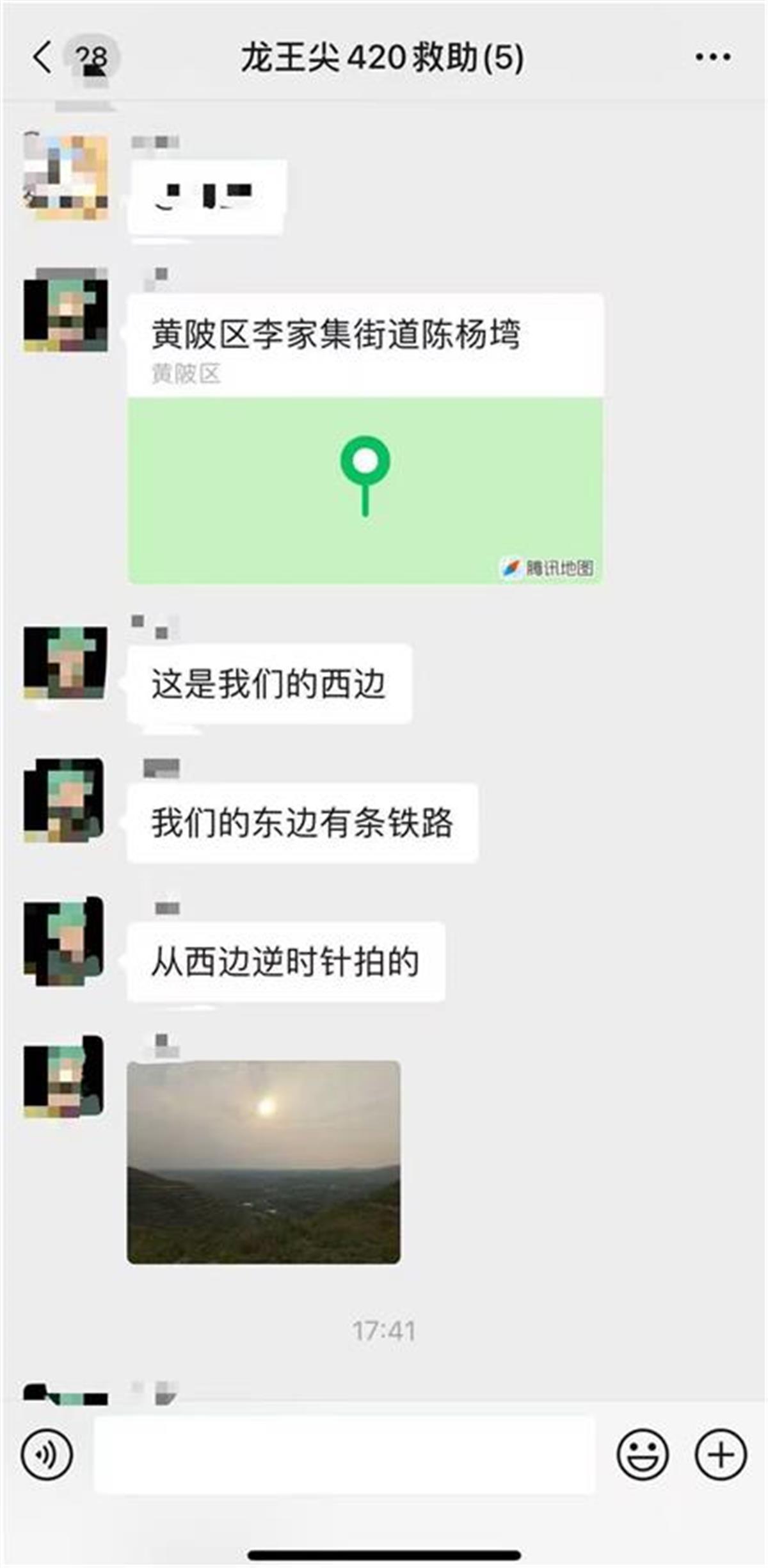 情况紧急,必须赶在天黑前找到走失人员。民警周茹韬迅速带领辅警陈汝培及驻村辅警李吉驾车赶往现场。途中,周茹韬等人与余先生取得联系并添加其微信,获得了余先生等人的定位和周边环境照片。