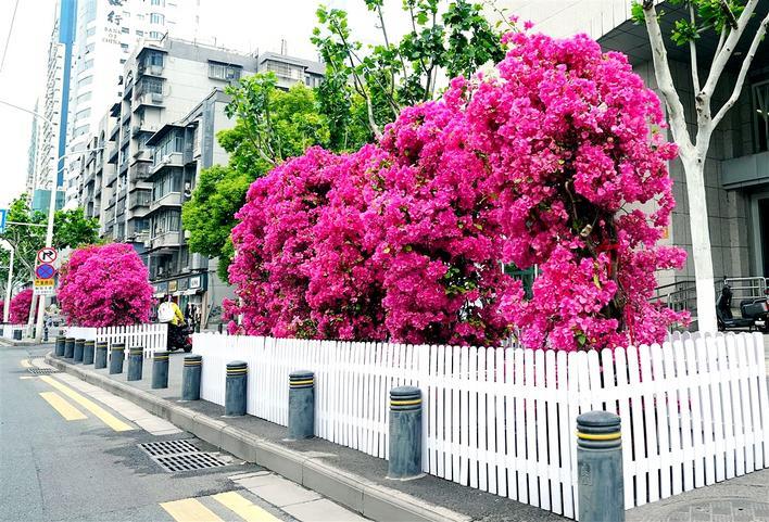三角梅会在街头待多久?万奕表示,根据天气情况和爆花效果来决定,如果天气很好,那至少一个月。