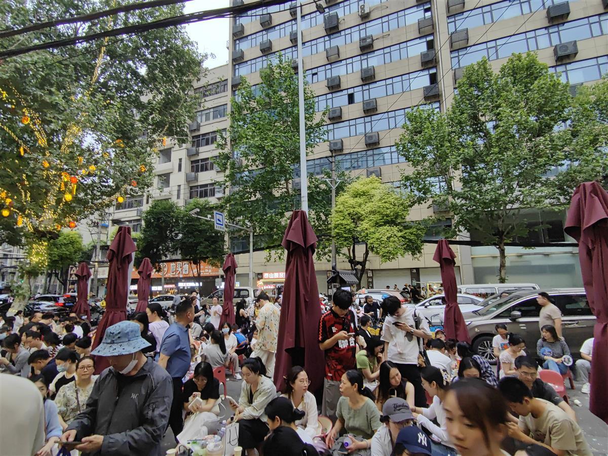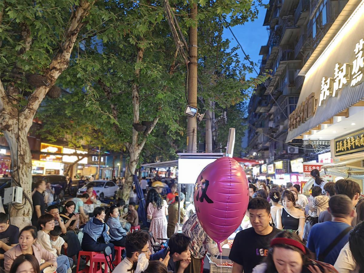 来武汉,凑热闹!五一假期,武汉各大景区和美食街早已游人如织。原本就火出圈的万松园美食街,人气持续高涨。络绎不绝的食客或排队选购,或坐下品尝美食,美食街处处充满人间烟火气。