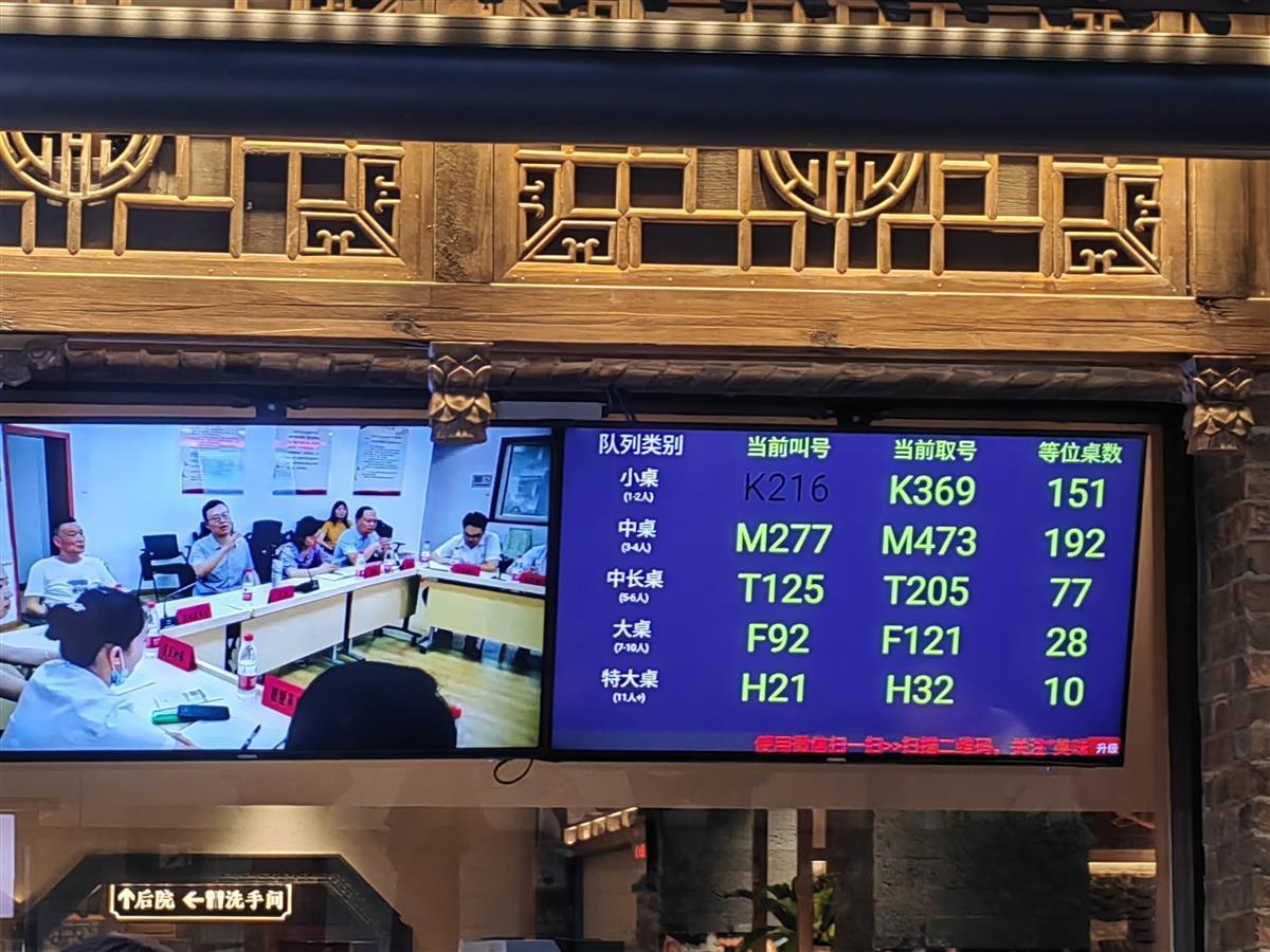 记者看见,取号机显示中座等候排位已接近200桌,但还不断地有游客前往取号,加入排号的队伍中。