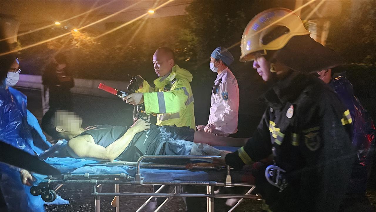 据受伤驾驶员讲述,当天晚上他驾驶货车经过该路段时,由于雨势较大视线受阻,加上地面湿滑,不慎撞上了前车。事故发生后,潘先生的身体剧烈疼痛,右腿被中控台死死卡住无法动弹,好在意识较为清醒,于是立即拨打了119报警求助。