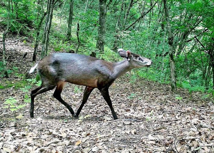 6月6日,湖北竹山县九华山林场护林员胡成军在日常巡山过程中,意外与一只国家二级保护动物毛冠鹿邂逅,并迅速用手机记录下这一珍贵瞬间。