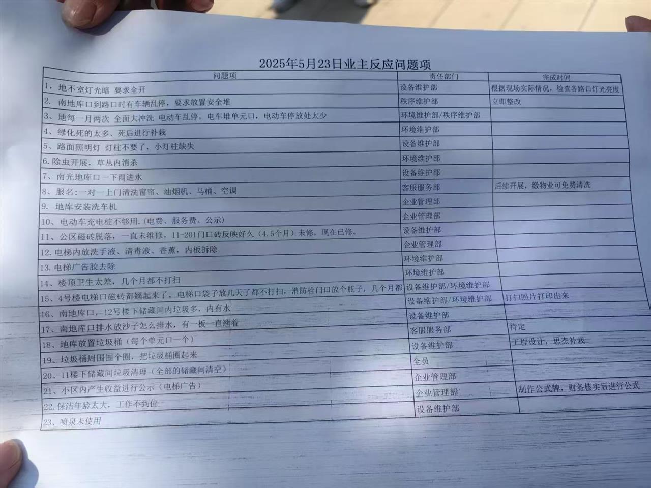 业主提供的一张问题清单显示,业主们提出了数十项问题,有待物业方面处理。