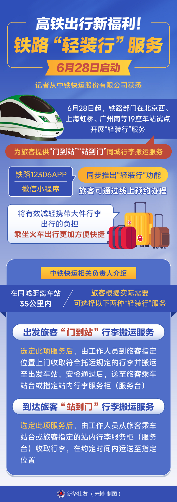原标题:高铁出行新福利!铁路“轻装行”服务6月28日启动