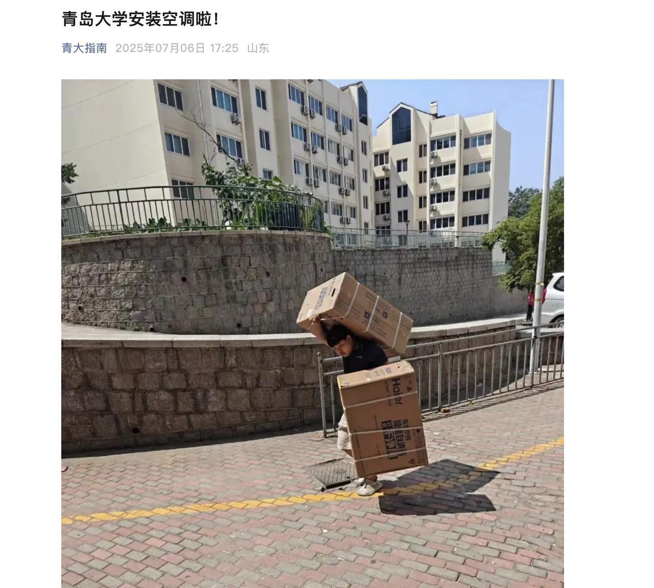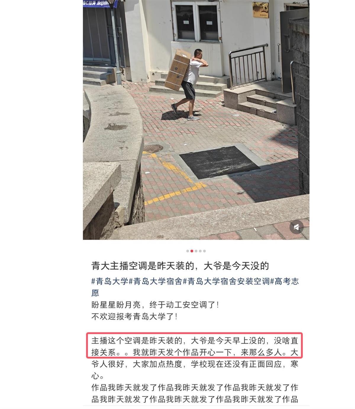 原标题:青岛大学回应“宿管大爷离世后装空调”:两者并无关联,之前既定计划