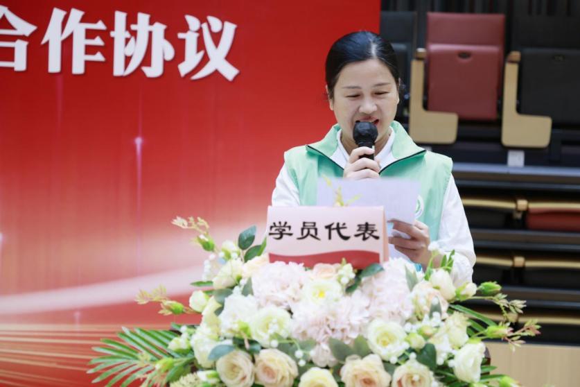 师资代表卢寒梅护士长发言,她代表全体授课教师郑重承诺,将以高度的责任感和专业精神,倾囊相授,耐心指导,确保教学质量。同时,也表达了对学员们的欢迎和鼓励,期待与大家共同学习进步。