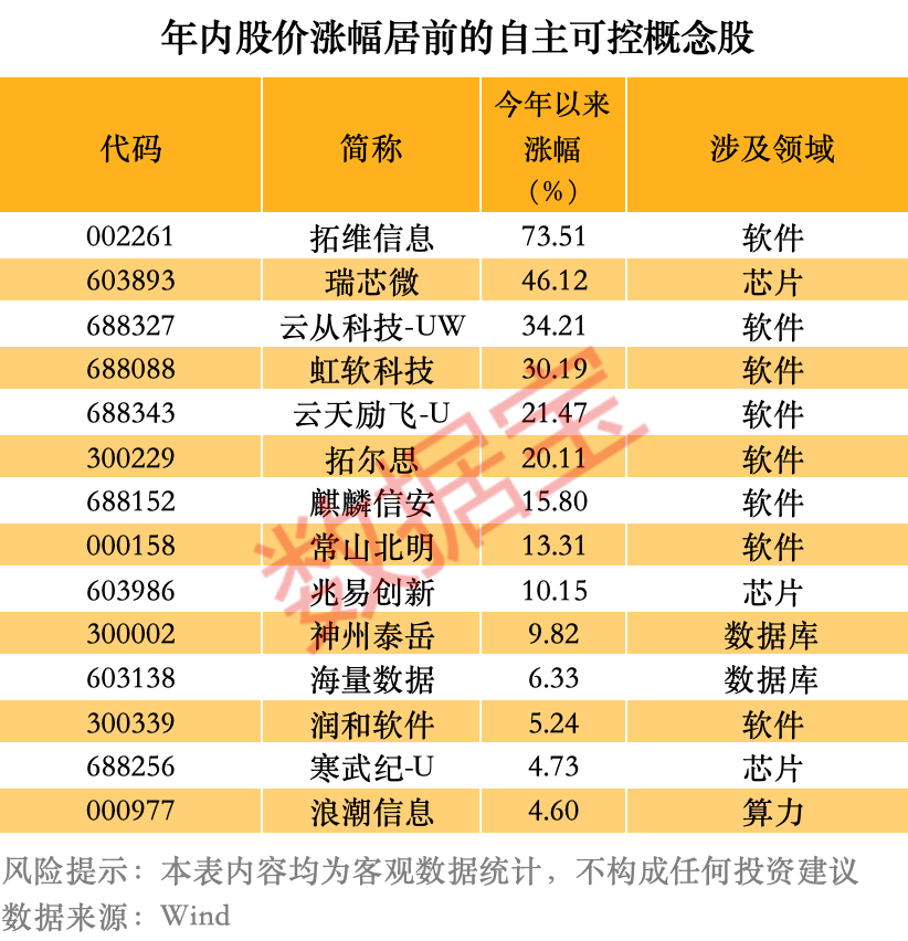 自主可控概念股年内涨幅亮眼
