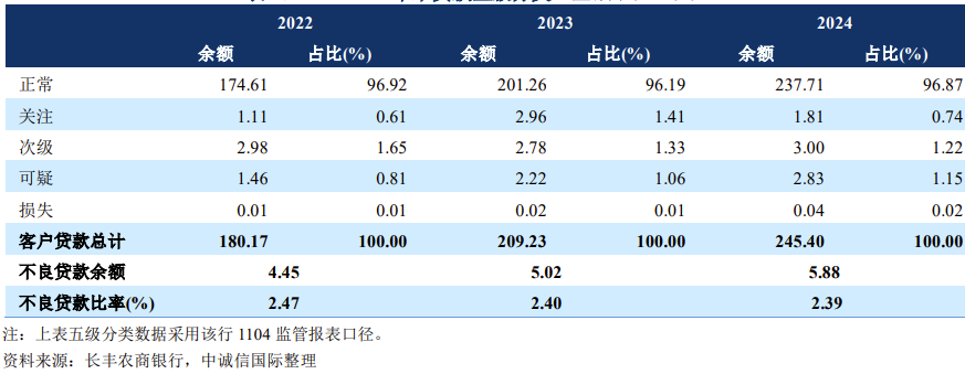 资产质量方面,中诚信国际在评级报告中明确指出,该行资产质量存在下行压力,尤其是房地产行业风险敞口较大。截至2024年末,建筑业、房地产业及个人住房按揭贷款合计占总贷款的22.37%,其中建筑业贷款不良率达4.62%,房地产业贷款不良率更高达9.85%。同时,2022-2024年不良贷款余额从4.45亿元攀升至5.88亿元,存量不良集中于建筑业、批发零售业等领域,前十大户不良贷款占比达41.00%,处置难度较大。此外,截至2024年末,该行无还本续贷及展期、借新还旧贷款合计12.53亿元,占总贷款的5.10%,在经济下行期存在较高的劣变风险,这也为后续资产质量管理带来挑战。