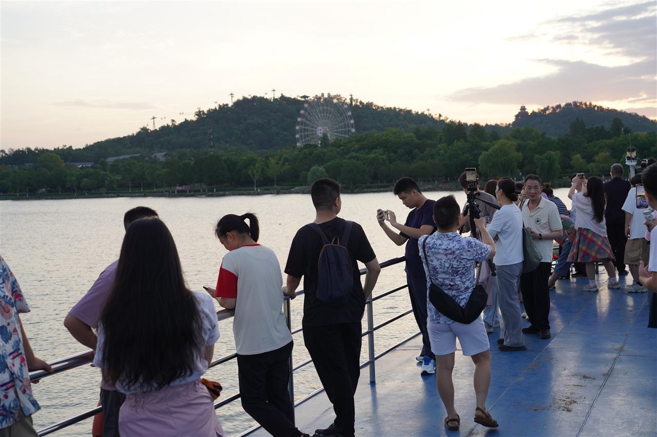 航线融合文化、音乐与生态体验,获得游客积极反馈。摄影爱好者王先生连续按下快门:"我每周起码来凌波门五次以上,这是第一次在船上看日出,仿佛在海上,太令人兴奋了!"家住东湖边的王先生是东湖的常客,他感叹道:"作为城市人民乐园,东湖越来越会玩,这样的创新体验应该多来些。"