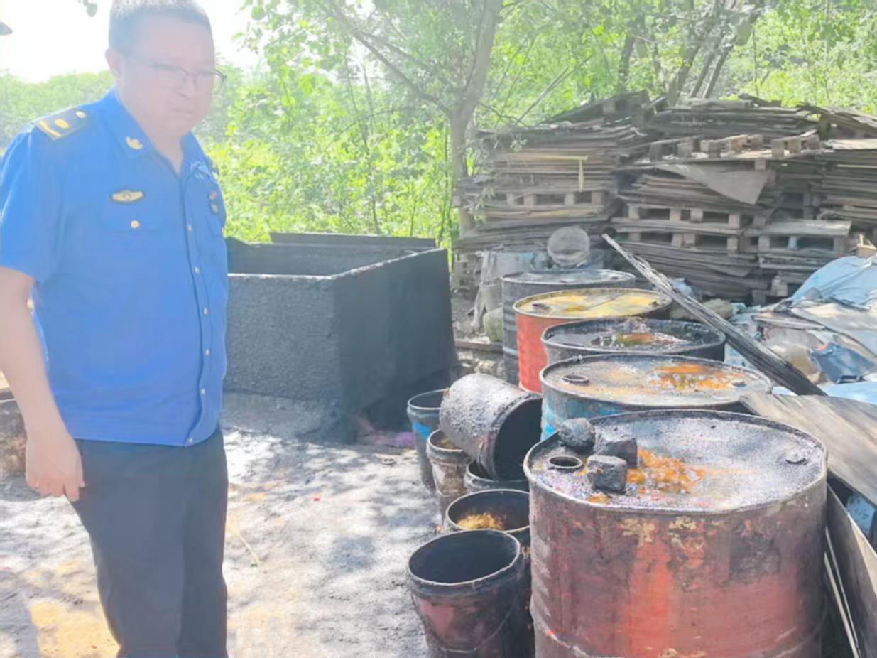近日,江夏区经济开发区综合执法中心藏龙岛执法队在日常巡查中,在梁子湖大道中洲村附近发现一处非法从事餐厨废弃油脂收集的“黑作坊”。江夏区城管执法局迅速联合藏龙岛执法队、中洲村村委会及具有专业资质的暄洁再生资源利用有限公司,果断采取行动,现场依法暂扣非法收集的废弃油脂6桶,总计重量超过1吨。