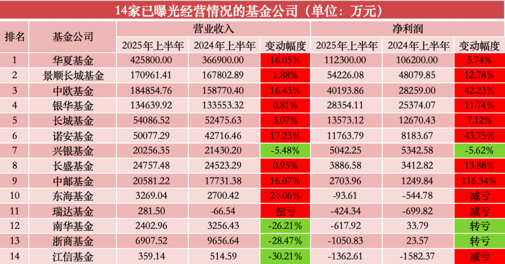 原标题:14家公募上半年业绩揭晓:8家净利正增长,南华、浙商由盈转亏