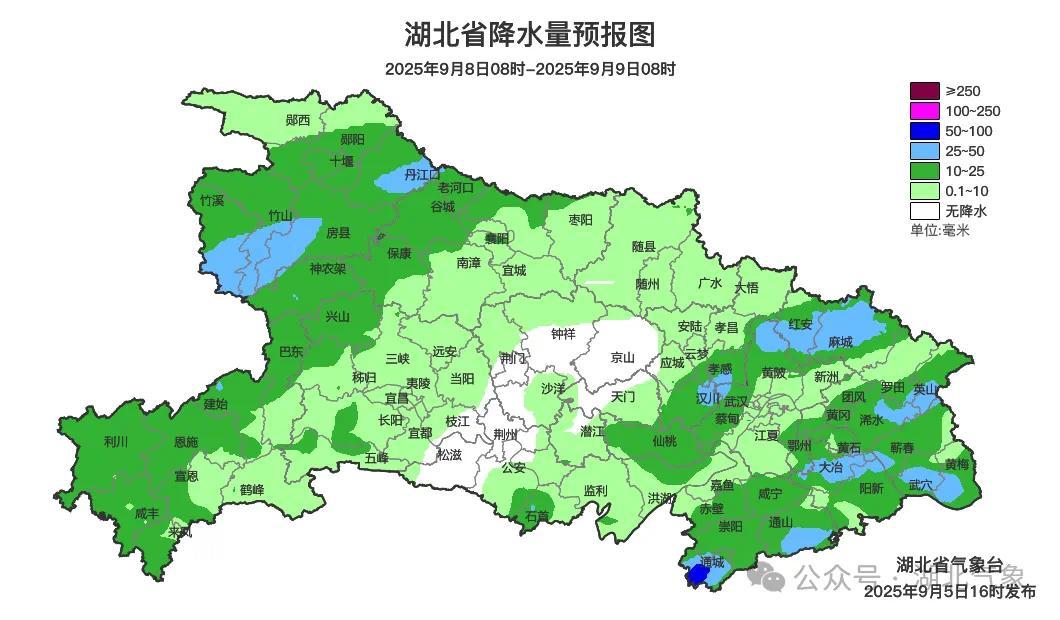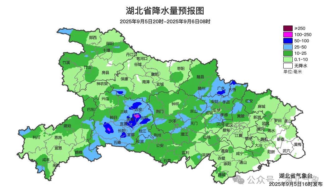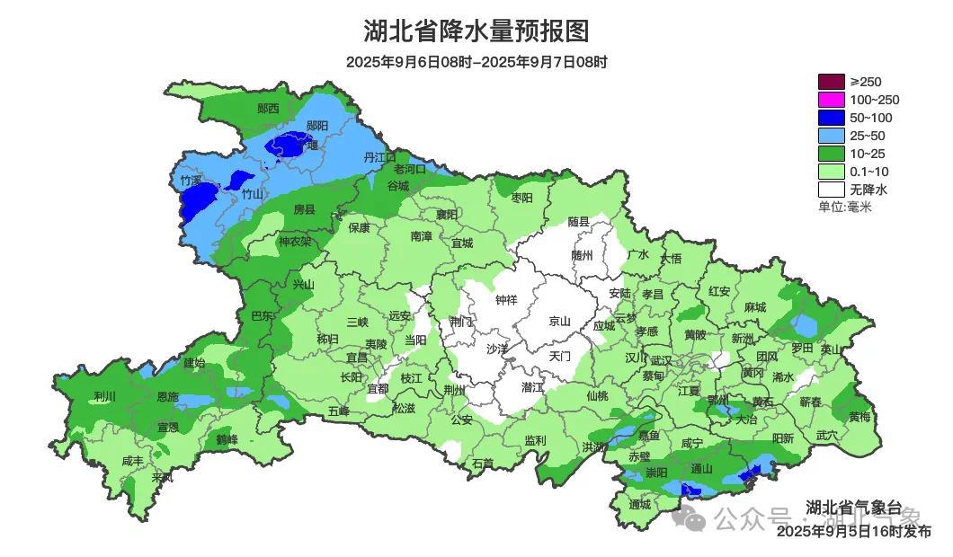 预报来源:湖北省气象台2025年9月5日16时预报
