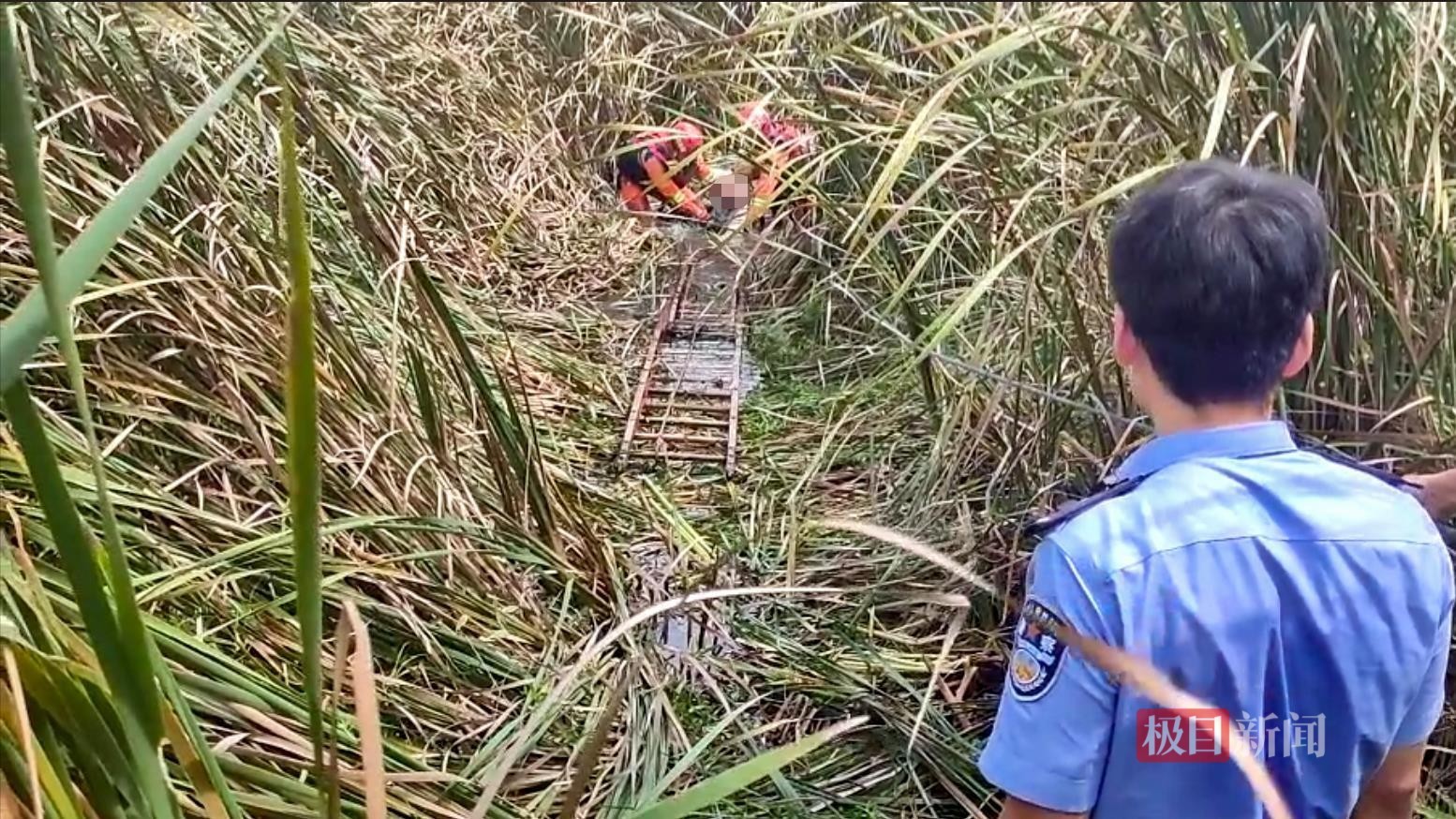 消防员抵达后发现,现场环境极为复杂,池塘周围遍布着两米多高的茂密芦苇,极大地增加了搜寻难度。消防员联合民警,一边艰难地开辟通道,一边利用无人机从高空侦察,老人在距离岸边约15米处,呈斜躺姿势陷于淤泥中,淤泥已没至其胸部。他的头部露在外面尚可呼吸,双手也仍能活动。
