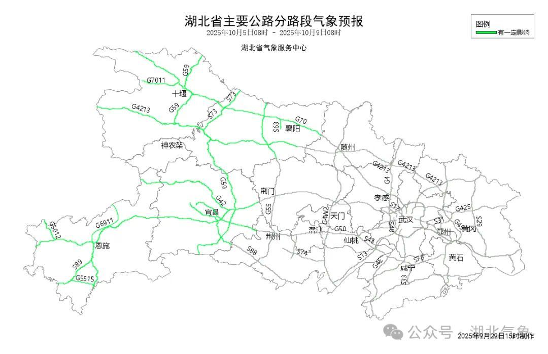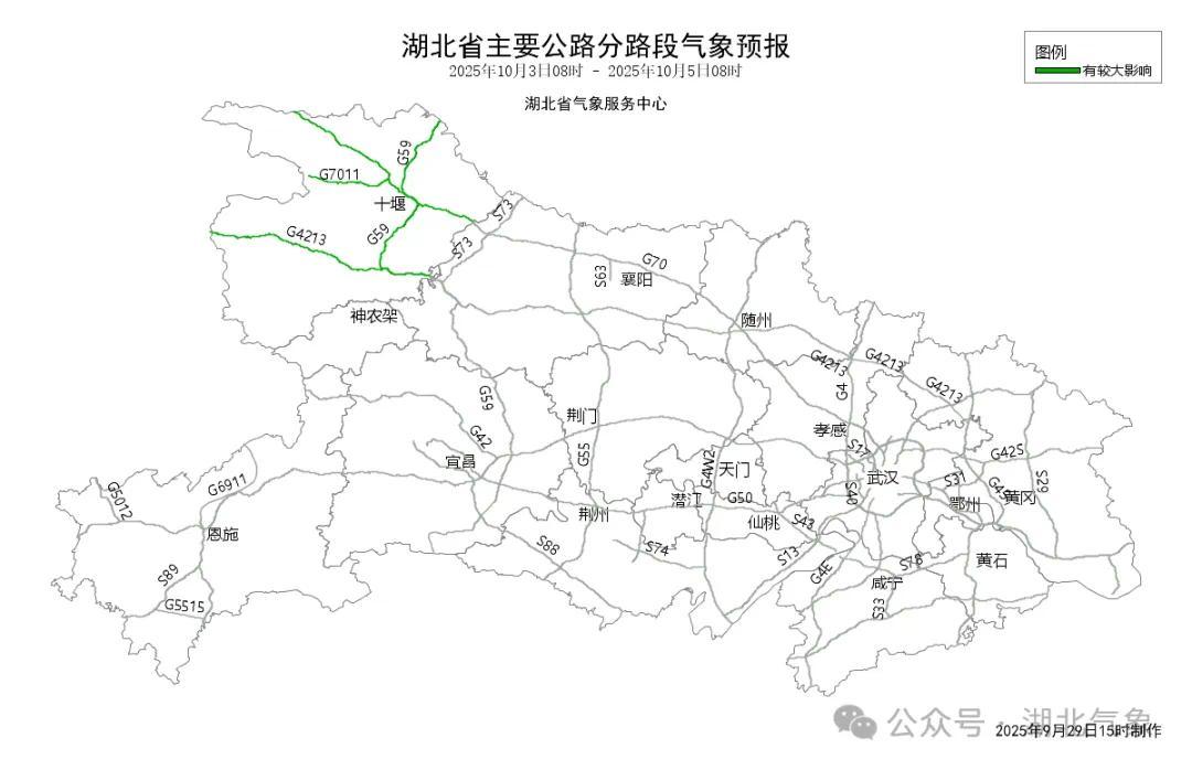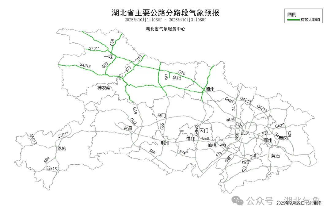 1、鄂西北降雨较多,请注意防范持续降水可能造成的山洪、滑坡、泥石流、隧道积水等次生灾害对公路通行安全的不利影响。