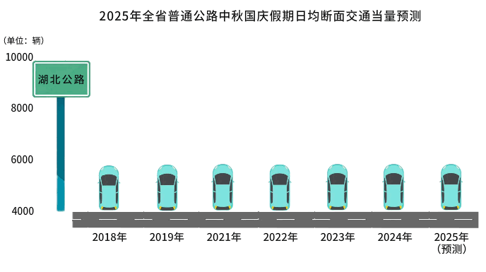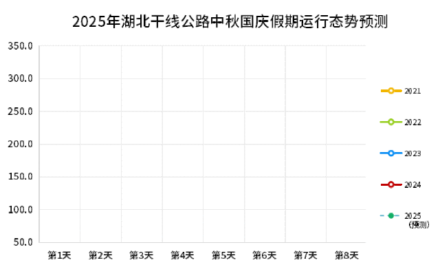 根据往年路网运行数据分析,结合近期全省干线公路路网流量运行实际,预计节日期间,全省高速路网通行车辆流量较近期平日日均流量增长约104%~108%,较2024年国庆假期日均流量同比增长5.4%~7.7%。预测峰值日出现在10月1日(假期第一天),峰值流量约为平日流量的2.96倍。
