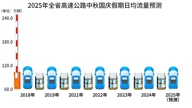 根据往年国庆假期流量数据分析,预计路网整体流量将呈现“前高后缓、峰值突出、逐日下降、返程分散”态势。
