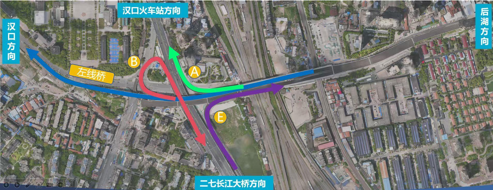 ①后湖大道/后湖南路-建设大道-二七跨线桥A匝道-汉口火车站方向;