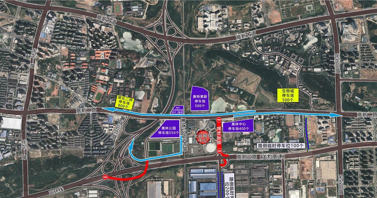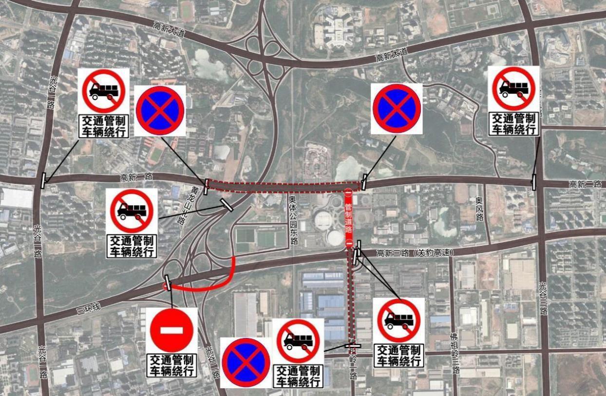 佛祖岭一路(高新二路至湖北省奥林匹克体育中心西大门):全天禁止机动车通行;