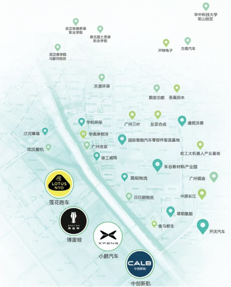 2024年,智汽园实现规上工业总产值578亿元,新能源汽车及零部件工业产值达到495亿元,新能源汽车产量6.6万辆占全区22%。截至目前,园区集聚企业800余家,已形成“整车引领、部件支撑、数字赋能、服务配套”的全产业链生态,涵盖了以路特斯、小鹏、博雷顿、开沃为代表的新能源整车龙头企业;以中创新航、雄韬氢雄、中原长江为代表的新能源企业;以日本爱机、韩国浦项、广州福迪为代表的汽车零部件企业;以亚马逊赋能中心、镁佳科技、雪浪云为代表的数字经济产业;强力构建了以长江汽车产业供应链、车百链数字化平台、锦融供应链为代表的产业供应链;以盒马鲜生、天源环保、圣禹排水、国际智能汽车零部件智造产业园、联东U谷、哈工大机器人集团武汉产业基地为代表的服务配套企业。当前,这一覆盖全产业链的生态体系正持续释放聚合效应,成为助推区域经济高质量发展的重要增长极。