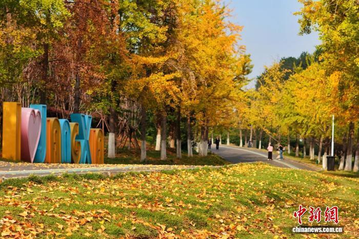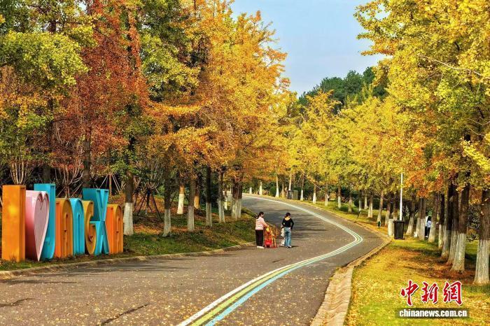 图为市民游客在公园散步、赏秋。周星亮 摄