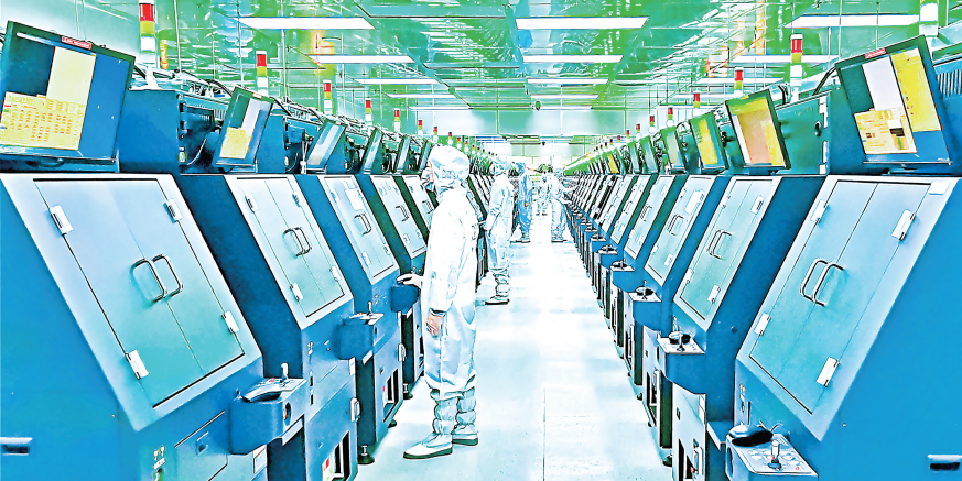 鄂州依托毗邻光谷的优势,以三安光电为链主,吸引显示芯片产业链上下游企业落户,与武汉共同助力湖北打造世界级“光芯屏端网”产业集群。图为位于鄂州葛店的三安光电生产线一角。 通讯员方仲华 摄