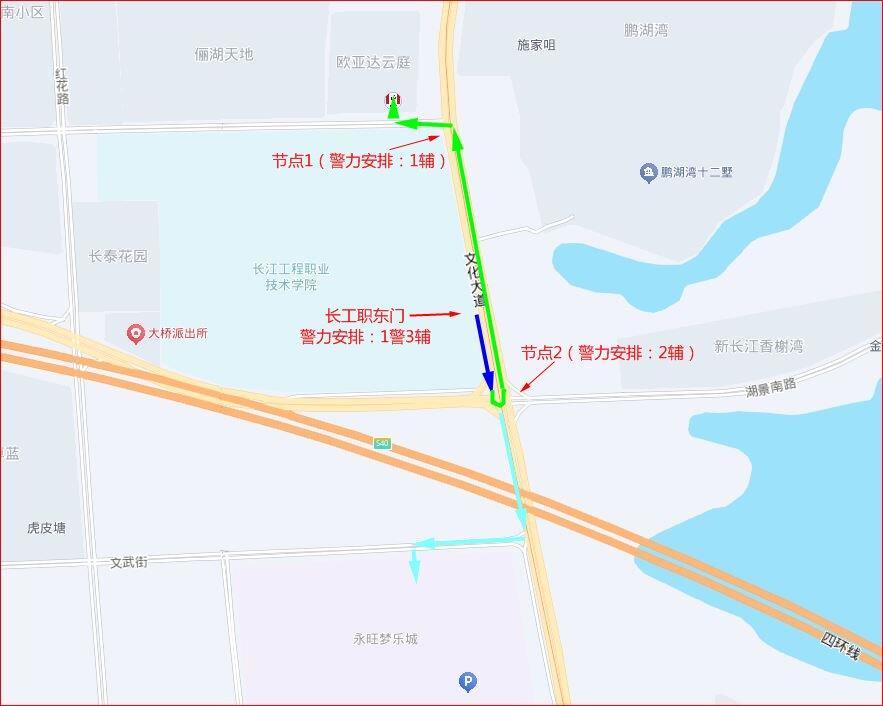 中州转盘、明泽街与中洲路路口、明泽街与梁子湖大道路口(沿线涉及武昌职业学院、湖北交通职业技术学院):交管部门将根据交通流量情况,采取临时交通管制措施;