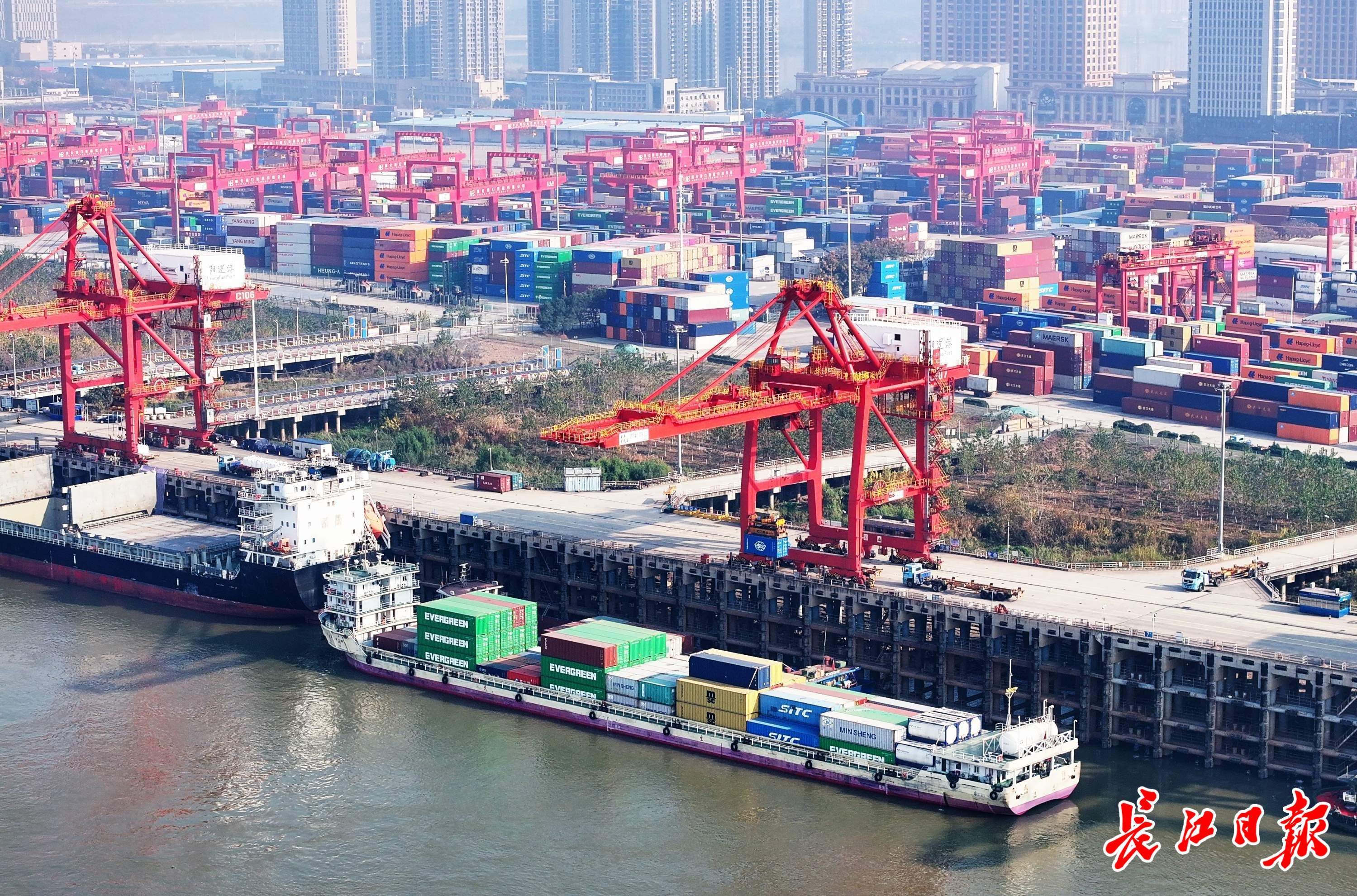 武港集装箱公司市场部经理李栋告诉记者,鄂湘赣集装箱航线已成为一条品牌线路,共投入10艘船舶,在“岳阳港—阳逻港—九江港”之间循环航行,每周8—10班,总航程460公里。“这条航线串联长江中游三座城市,促进三地产业协同与资源互补,加速区域经济一体化进程。同时,为沿线企业提供高效物流通道,降低运输成本,吸引更多产业向沿江布局,形成产业集群效应,推动长江中游城市群发展。”