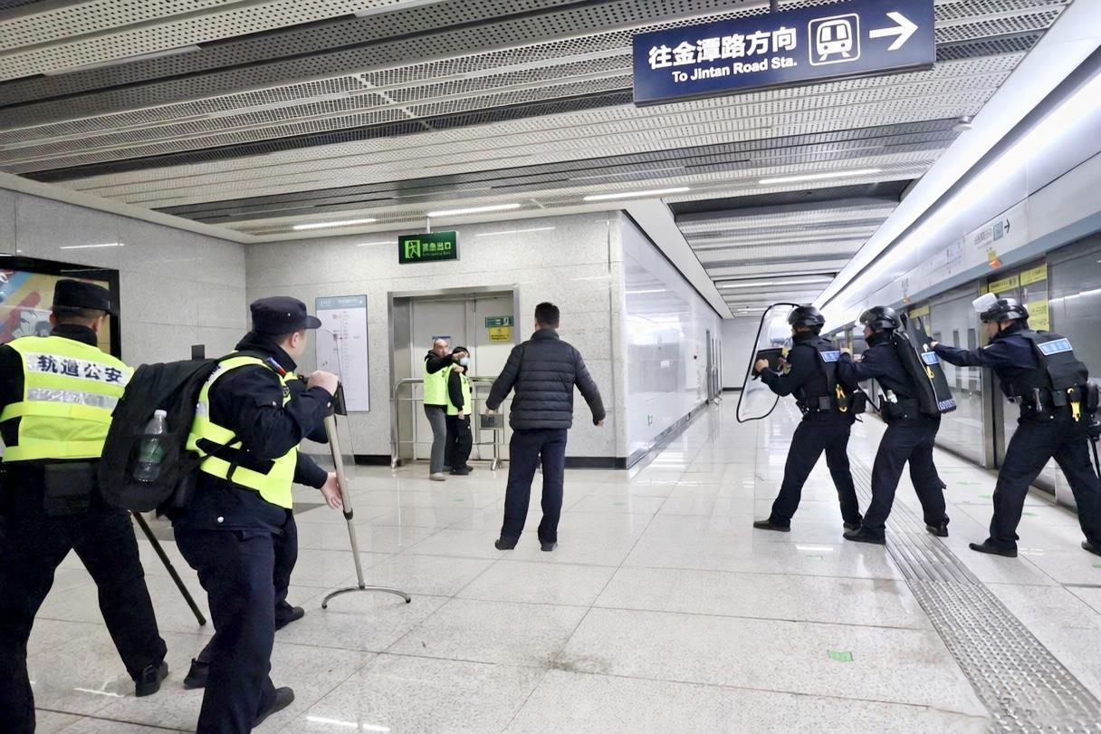 为进一步提升轨道辖区突发事件应急处置和地上地下联勤联动能力,12月18日晚,武汉市公安局轨道交通管理分局、特警支队联合地铁运营公司在地铁8号线车厢内和徐家棚站开展过江隧道应急处突实战演练。分局各职能大队、辖区派出所、特警支队民警辅警以及地铁运营公司员工等30余人参加。