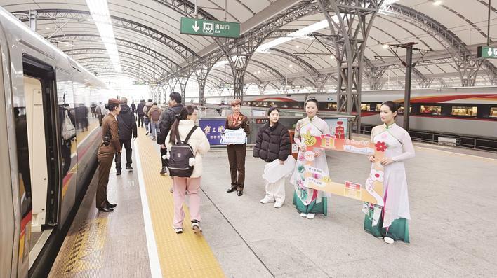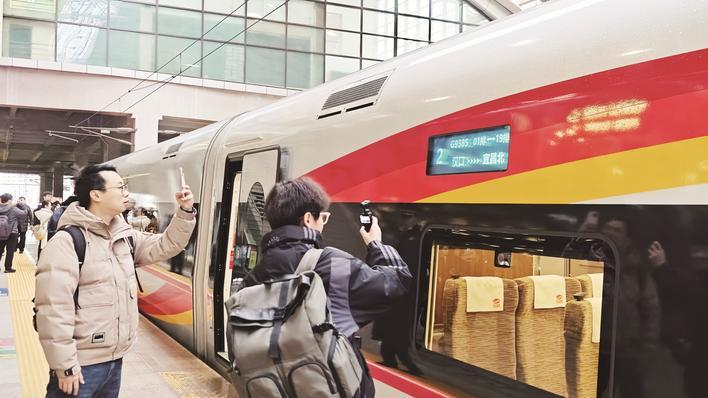 沪渝蓉沿江高铁武宜段开通进入倒计时。12月23日,媒体记者团从汉口站登上G9385次列车,尝鲜体验这条新高铁。本次试乘的G9385次列车采用复兴号CR400AF-S智能动车组,行驶时平稳舒适,车内显示屏显示最高时速达350公里。该线路开通后,将打造“汉襄宜1小时高铁圈”,汉口到宜昌最快仅需69分钟。