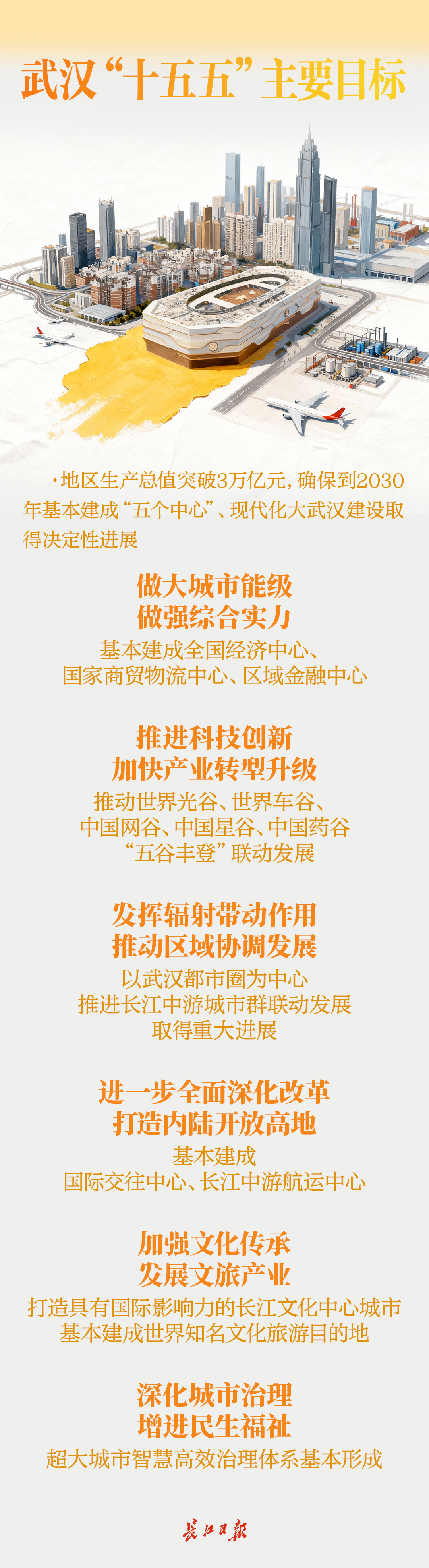 1月6日上午,武汉市人大十五届人民代表大会第六次会议开幕。《政府工作报告》提交审议。报告回顾了2025年和“十四五”工作,提出了“十五五”主要目标和2026年重点工作。
