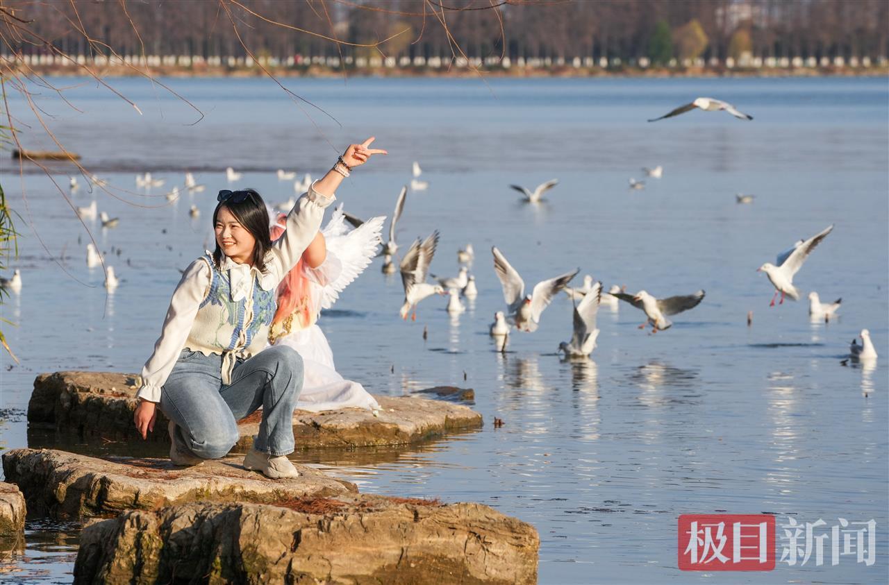 原标题:东湖红嘴鸥几乎成了“广场鸽”,游人可零距离互动享野趣