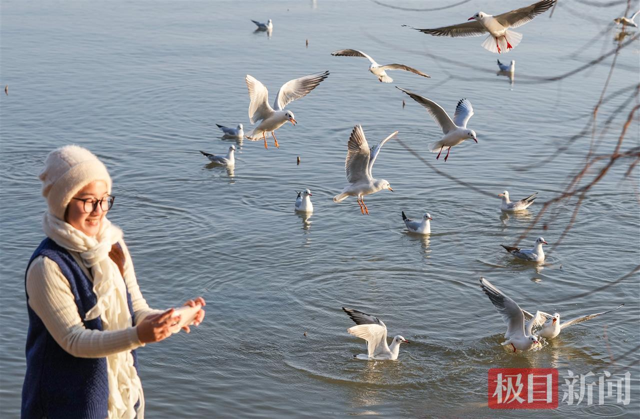 印象中使用400MM以上的超长焦镜头都不一定能拍得好,如今,在东湖越冬的红嘴鸥几乎成了“广场鸽”,游人“触手可及”。1月6日,连日阴雨过后,武汉迎来晴好天气。极目新闻记者在东湖绿道看到,大批市民游客趁着好天气走出户外,骑行赏景、亲近自然。在楚风园至九女墩段的湖边,成群红嘴鸥的翩跹身影更成为冬日美景。