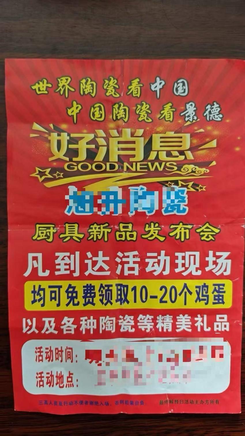 随着调查深入,一个针对老年人的“精准”骗局浮出水面。原来,自2025年10月底起,在金水闸菜市场附近,常有陌生人向散步、买菜的老人递上传单,热情邀请他们去附近仓库“听听健康知识,免费领鸡蛋”。不少老人抱着凑热闹的心态前往。