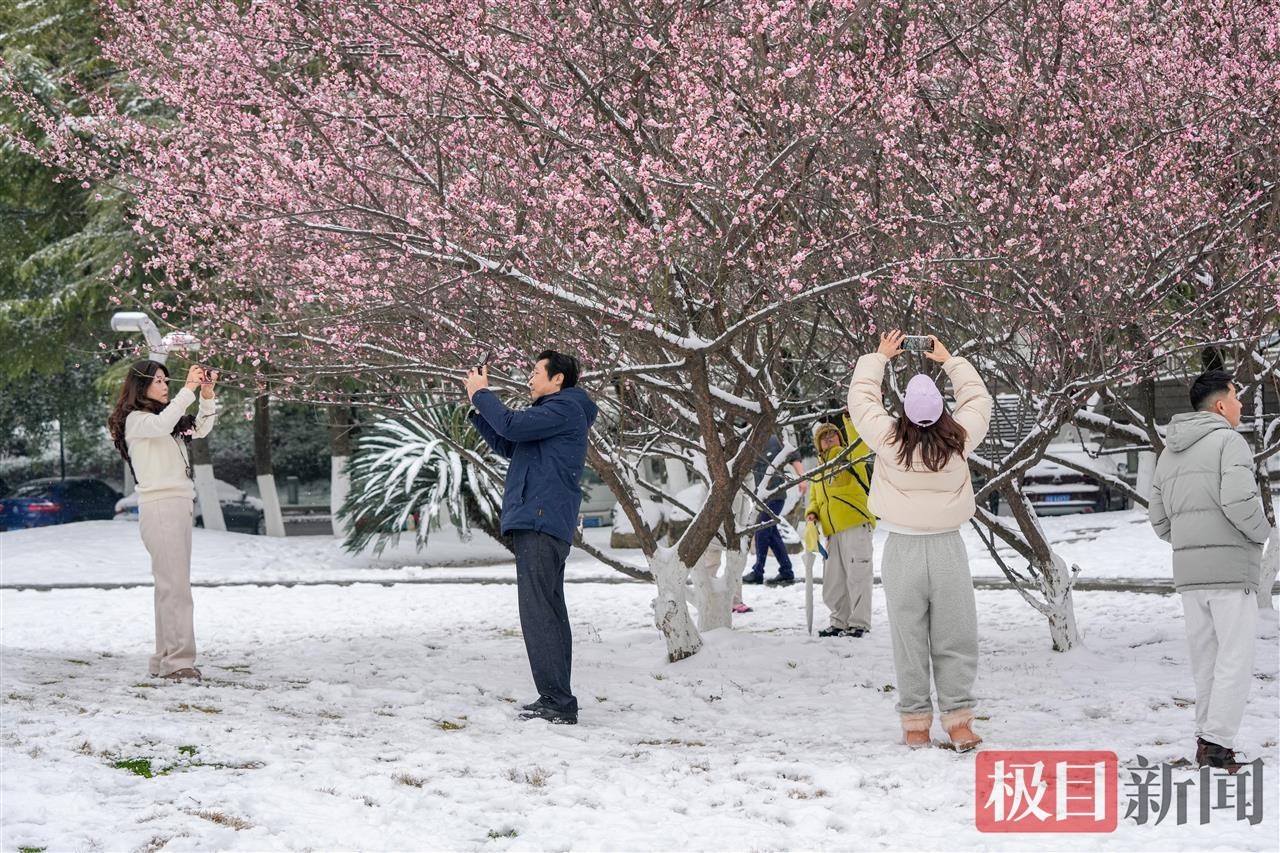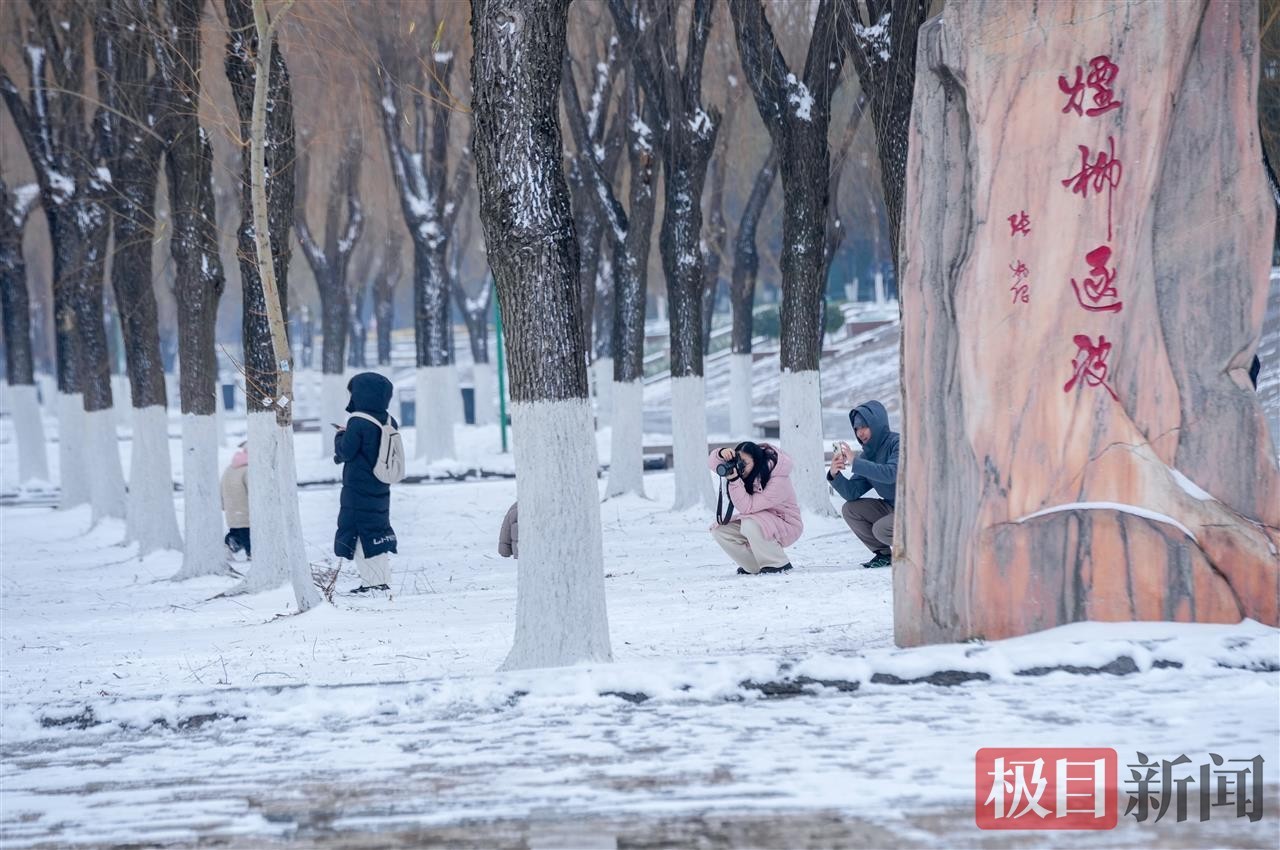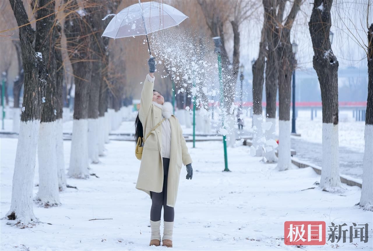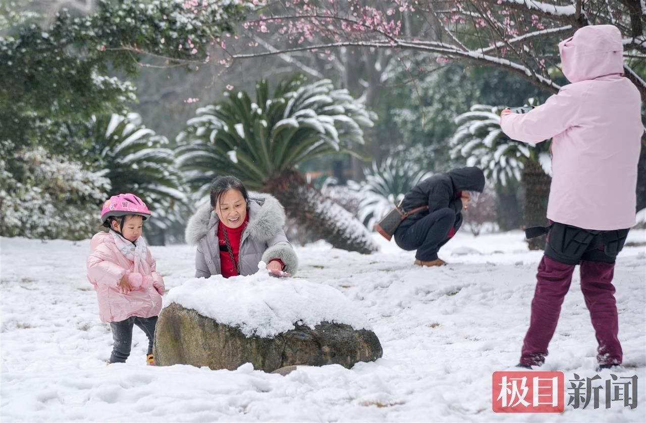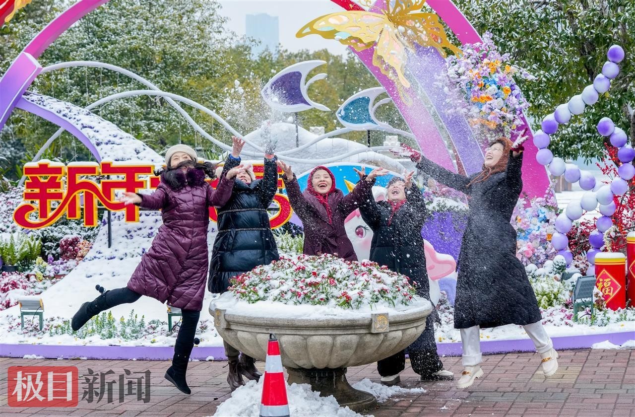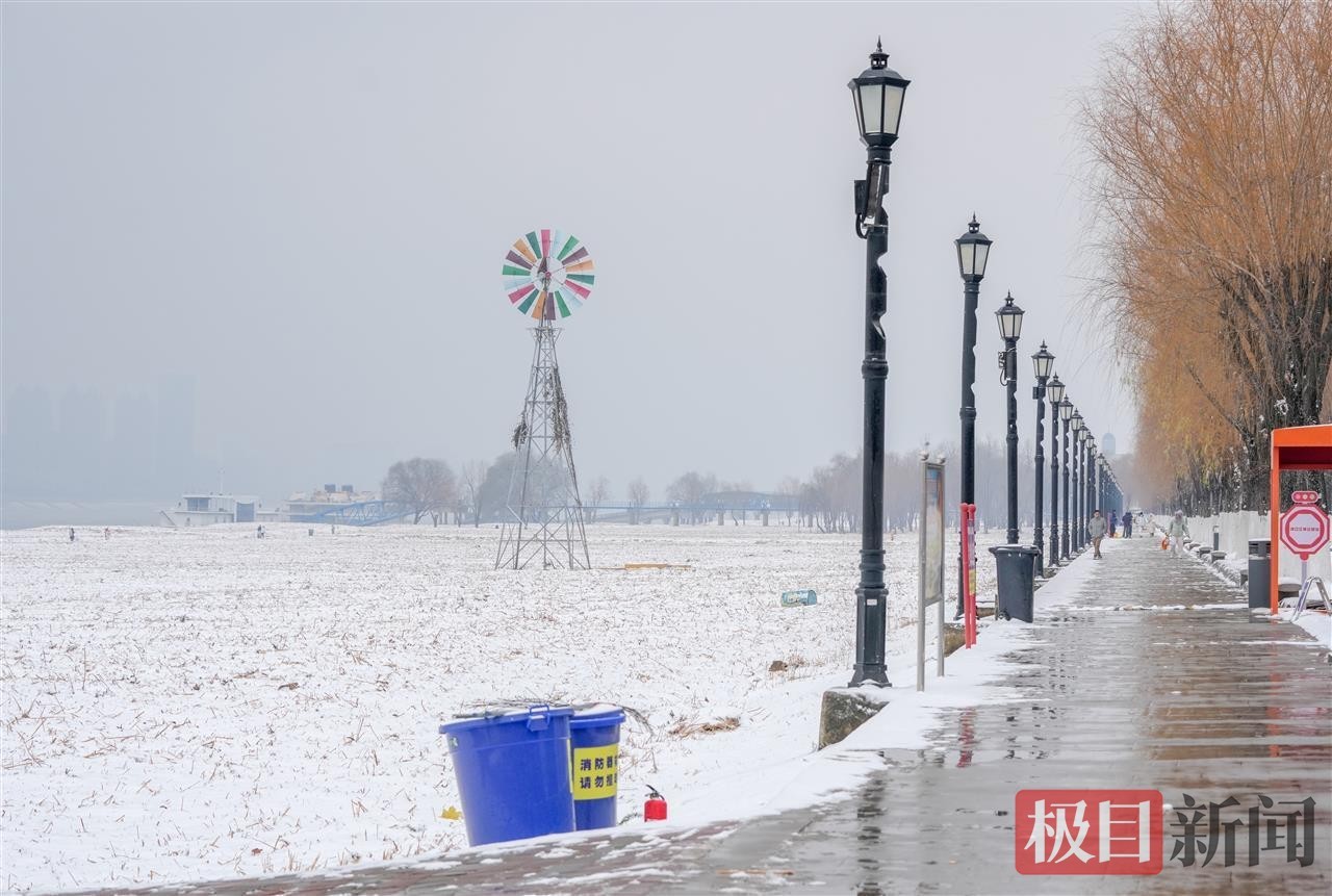 当天中午,极目新闻记者在汉口江滩看到,松软的积雪为江滩铺上厚厚的“白色地毯”,长江岸线与白雪相映成趣,呈现出童话般的唯美景致。尽管气温偏低,但寒冷并未阻挡市民的赏雪热情。不少在周边工作的市民利用午休时间前来打卡,大家或三五成群一起堆起憨态可掬的雪人,或在雪景中摆出各式造型拍照留念,欢声笑语让静谧的江滩充满生机活力。