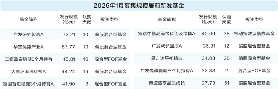 2026年1月,公募基金发行市场迎来强势开局,实现开门红。数据显示,1月新成立基金数量与发行总规模均显著攀升,其中混合型基金扮演发行主力,单月募集规模为近4年来最高,多家头部基金公司旗下产品认购热度高涨。