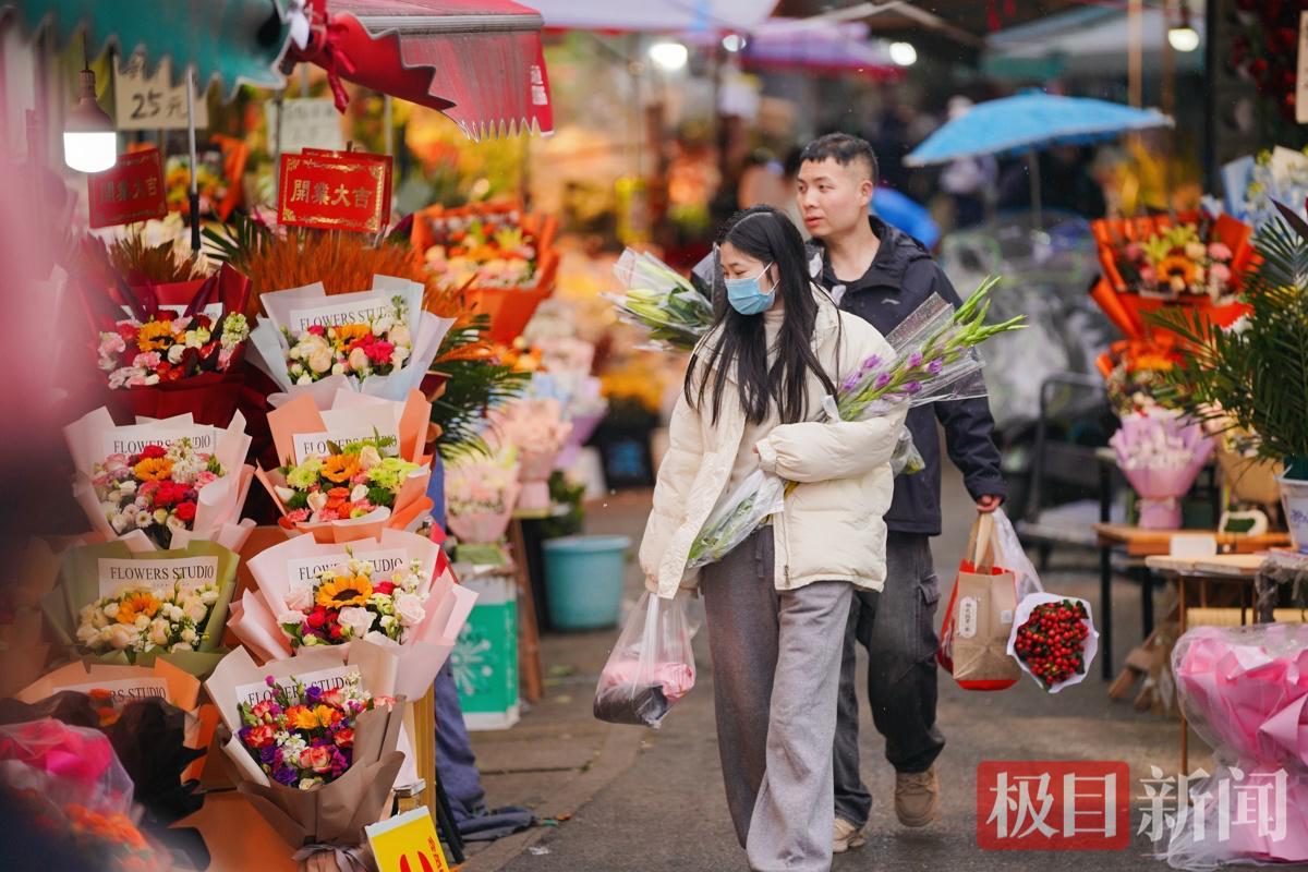 临近春节,江城各大花卉市场的年宵花卉迎来销售旺季。 2月9日,汉口循礼门花卉市场一派热闹景象。花市摆出了百合、银柳、冬青等年宵花,还上新了澳洲蜡梅、雪柳等鲜切花,消费者赏花购花,喜迎马年春节。楚天都市报极目新闻记者宋枕涛 摄影报道