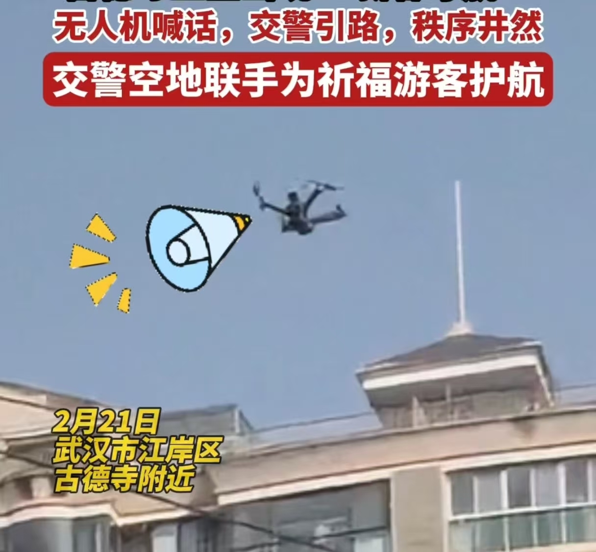 警用无人机喊话、AI眼镜识车、飞身截停溜车……这个春节,武汉交警全程守护,暖意满满。