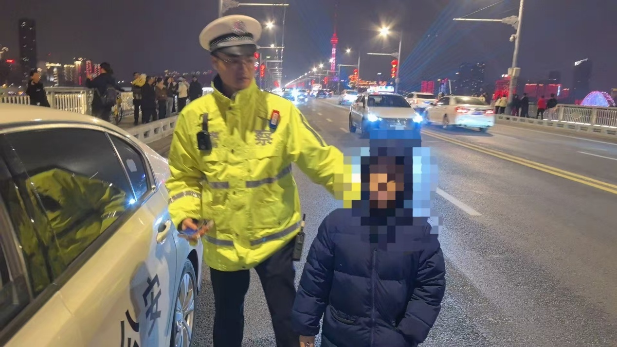2月18日(大年初二)20:00时许,长江大桥上游客如织。长江大桥大队执勤交警胡愈巡逻时发现一名约五六岁的男孩蜷缩在路边,身边没有家长陪伴。
